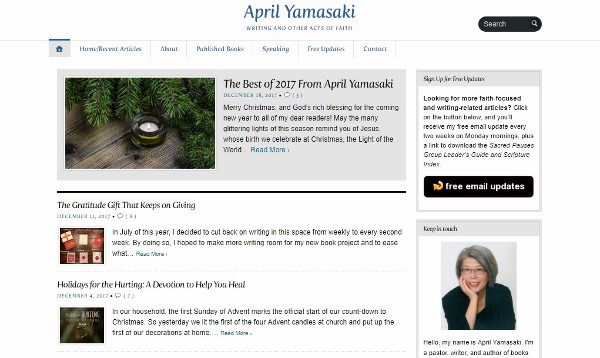 • It allows me to customize with a header photo of the Chapel of the Holy Cross in Sedona, Arizona. This photo was taken by my husband, so it’s a personal reminder of our visit to Sedona one year and beautifully conveys the faith-based theme of my website.