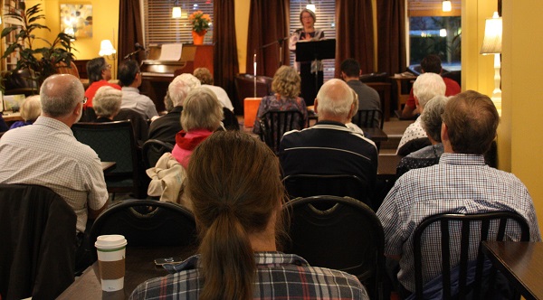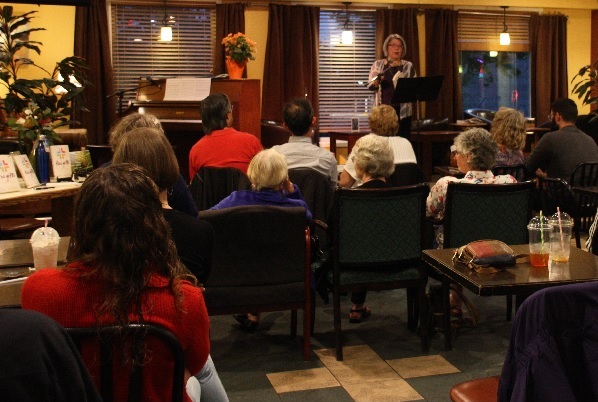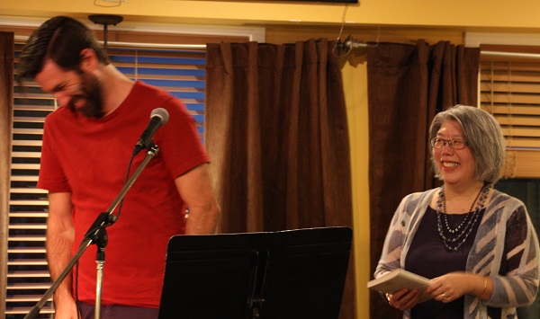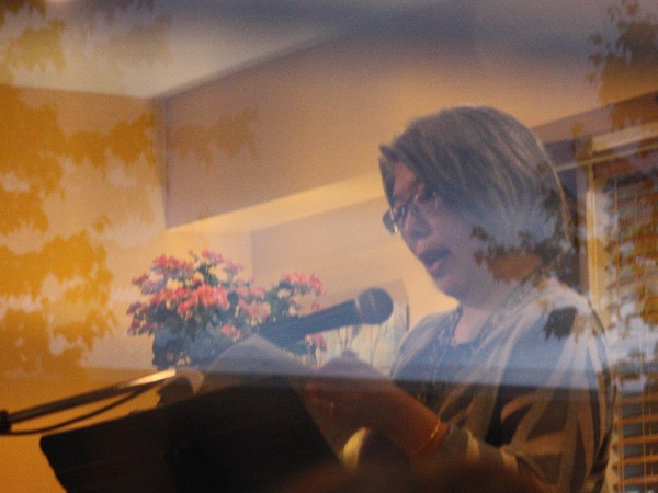 Thank you to John and Angelika Dawson for these photos – I like this special effect during my reading, a shot from outside the window.