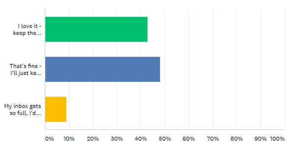 My inbox gets so full, I’d rather go back to every other week – 9.09%