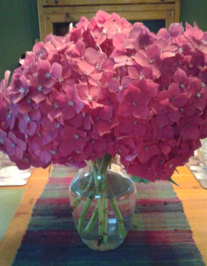 Every year I enjoy gorgeous hydrangeas from my garden with very little effort. Most years I just water, do a bit of trimming, and enjoy—mainly in the garden, but sometimes I bring the blossoms indoors too even though they make for a rather top-heavy arrangement.