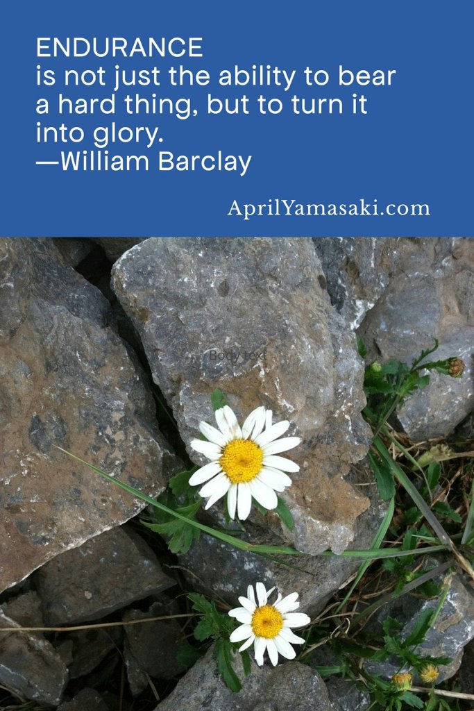 A few years ago, my husband and I received a calendar with inspirational sayings. I saved this one: “Endurance is not just the ability to bear a hard thing, but to turn it into glory.”