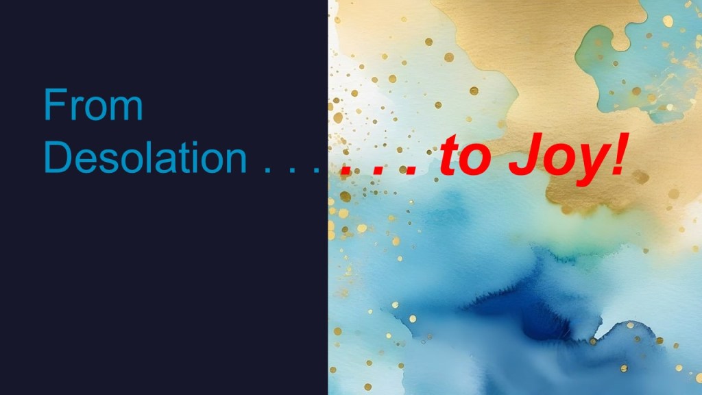 Writing/Reflection Prompt: Where do you see this movement from desolation to joy in your own life and in the lives of those around you?