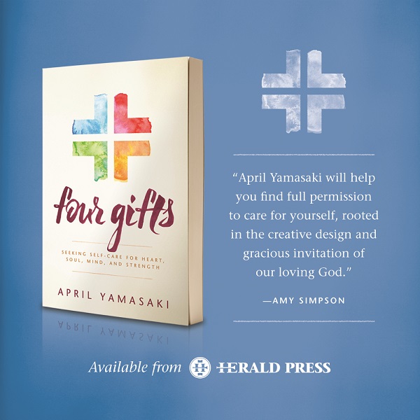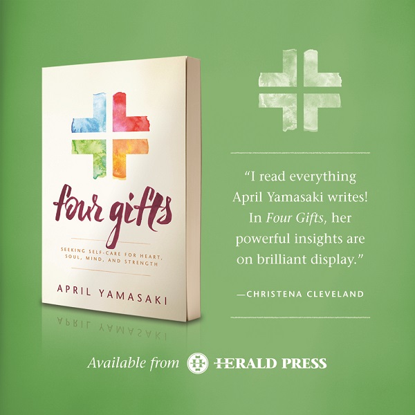 As my sprint for justice has shifted to a marathon for justice, I have learned–sometimes the hard way–that soul care is not an indulgent luxury or a distraction from more crucial issues. Rather, it is simultaneously the work of justice and the sustenance that fuels the work. In my soul’s journey into the deeper, darker, and nutritious soil of soul care, I have looked to April Yamasaki as a trusted guide. I read everything she writes! In Four Gifts, her powerful insights are on brilliant display.